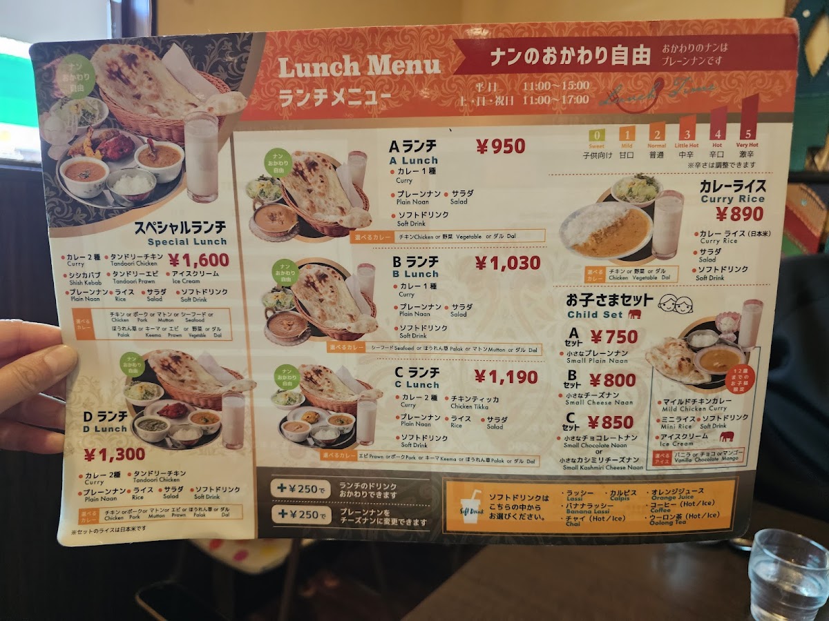 The restaurant’s menu is a reflection of India’s rich culinary heritage, with a special focus on hearty meals and bold flavors. One standout dish is the ランチ チキンカレー ナン スープ ラッシー付きで890円 (Lunch Chicken Curry with Naan, Soup, and Lassi for 890 yen). This meal, perfect for a midday break, combines tender chicken in a flavorful curry, soft naan bread, a soothing soup, and a refreshing lassi, making it a well-rounded and satisfying option. Another popular choice is the タンドリーチキン (Tandoori Chicken), cooked to perfection with smoky, charred flavors that are a hallmark of traditional tandoor cooking. For soup lovers, the Chicken Soup provides a warm and comforting option, perfect for any season.